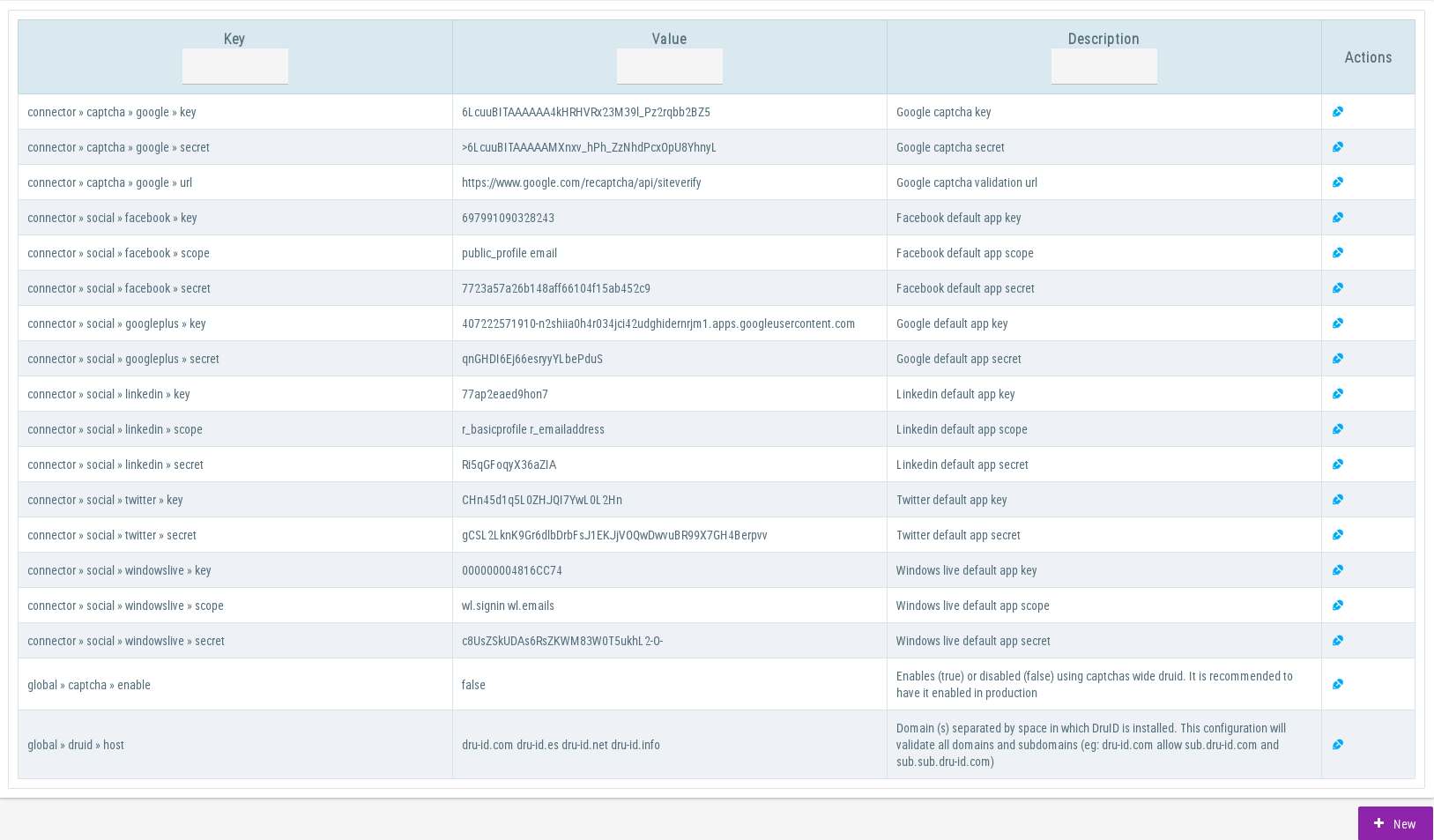 Some of this configurations are not erasable because are needed by DruID core (you can only delete properties added by you).