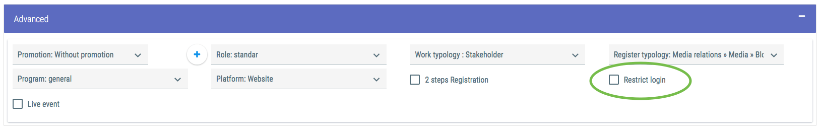 - Login restriction per typology: DRUID allows you restrict login in an app to specific group of typologies. This is configured in the advanced entry point configuration through Cockpit tool
